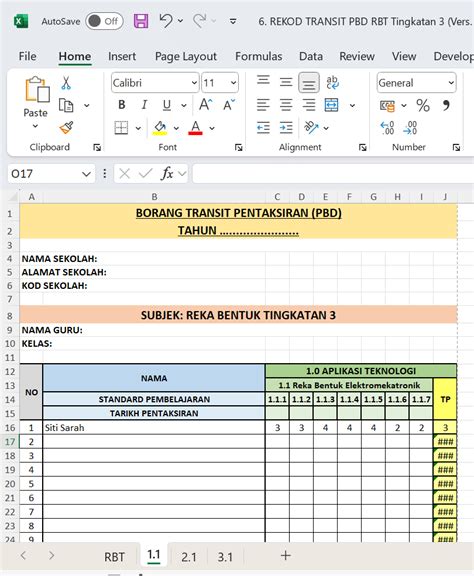 BORANG TRANSIT PBD SAINS.xlsx NAMA SEKOLAH TAHUN PERSEKOLAHAN. Transit pbd borang sains